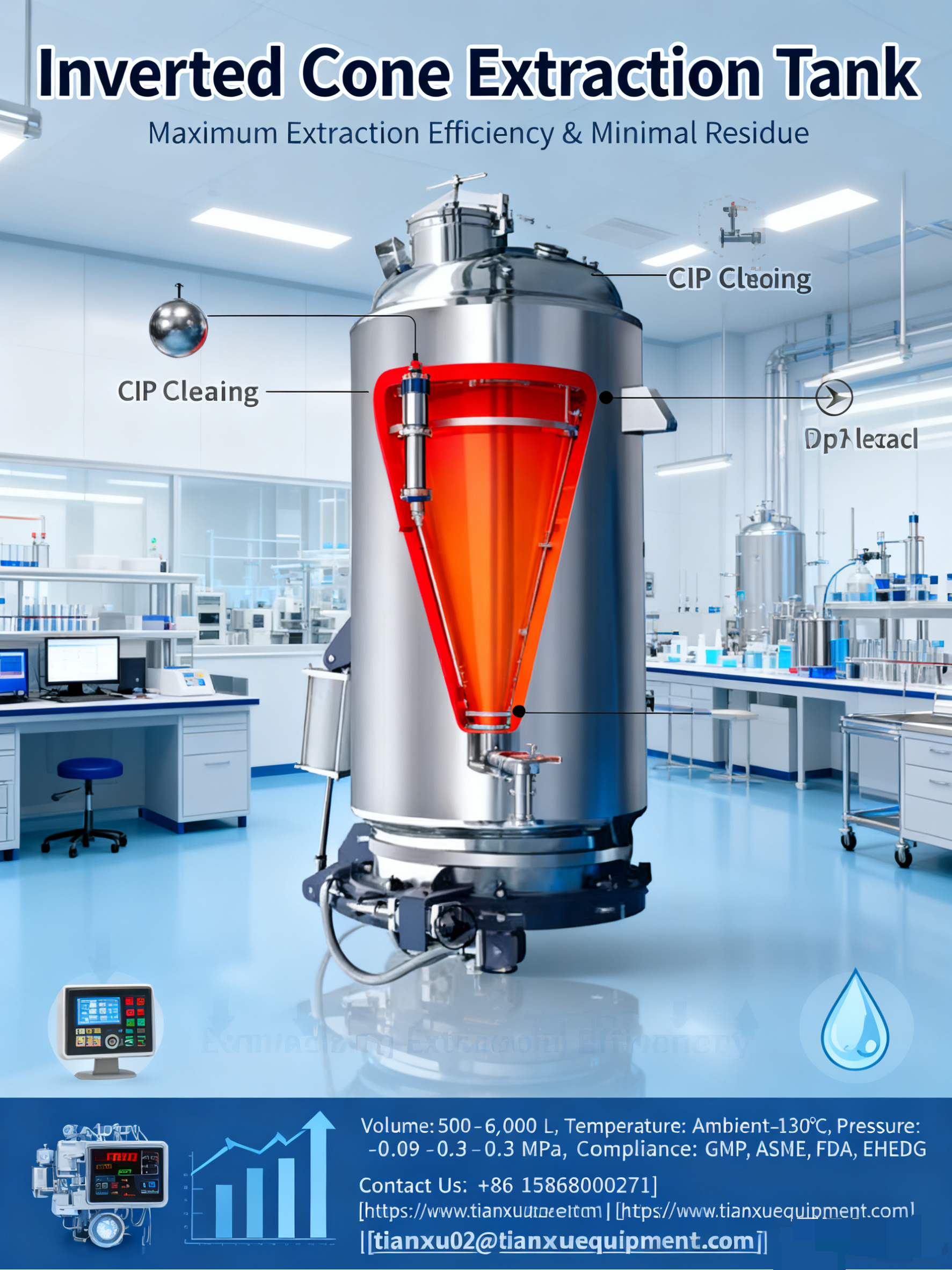 The 2000L Stainless Steel Extractor for Herbal Medicine sets a new benchmark in natural product extraction, combining traditional herbal processing wisdom with advanced engineering technology. This industrial-scale extraction vessel is constructed with 316L stainless steel throughout all product contact surfaces, featuring a Ra 1.6μm sanitary polish that ensures purity while resisting corrosion from botanical acids and solvents. With a nominal capacity of 2000L and working volume of 1600L, it efficiently processes large batches of medicinal herbs while maintaining 95%+ active ingredient retention – a 20% improvement over conventional extraction methods. The system integrates multiple extraction technologies including reflux, decoction, and ultrasonic-assisted extraction, controlled via a PLC system with recipe storage for different herbal formulations. Fully compliant with EU 2025/351 regulations and FDA CFR 21 Part 177 standards, it meets global requirements for herbal medicinal product manufacturing.