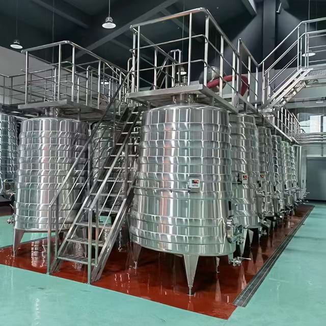 • Inlet/Outlet Design: Equipped with 38mm diameter ports for smaller capacities (500L to 2000L) and 76mm ports for larger units (40,000L to 50,000L), facilitating efficient grape must transfer and reducing processing time.