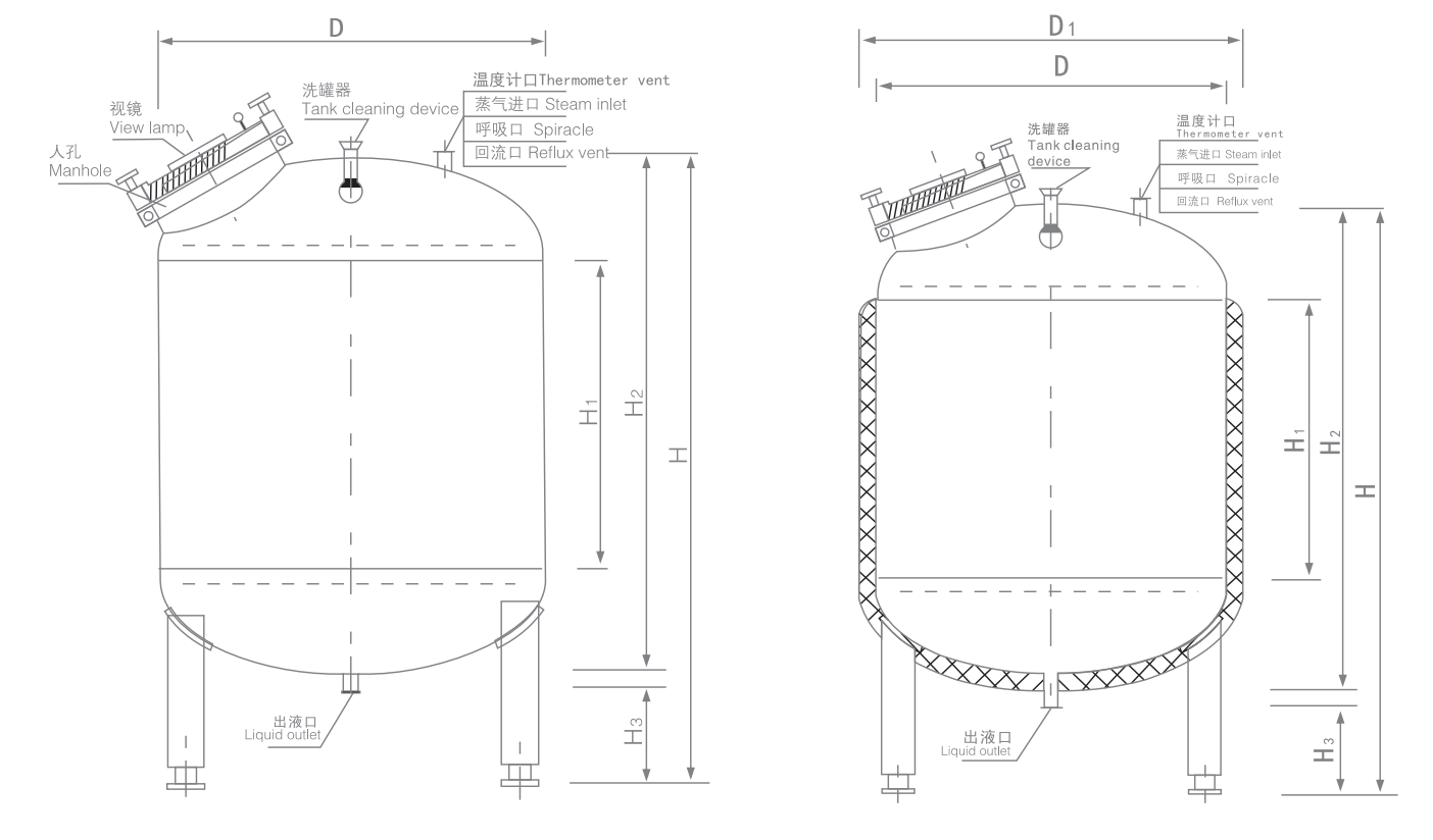• Complete Drainage System: The tank bottom features a 3°–5° slope (conical bottom) or a flat bottom with a central drain port (diameter: 50–100 mm), ensuring complete drainage of beverages (no residual liquid >50 mL) to prevent spoilage and cross-contamination.